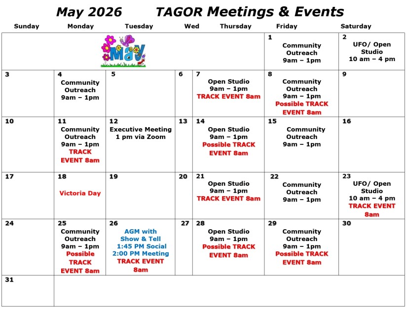 Note: in April, May and June there are track events that may make parking difficult. These are noted in red on our calendar below. The events noted ‘Possible’ will only be held if the prior time was rained out.