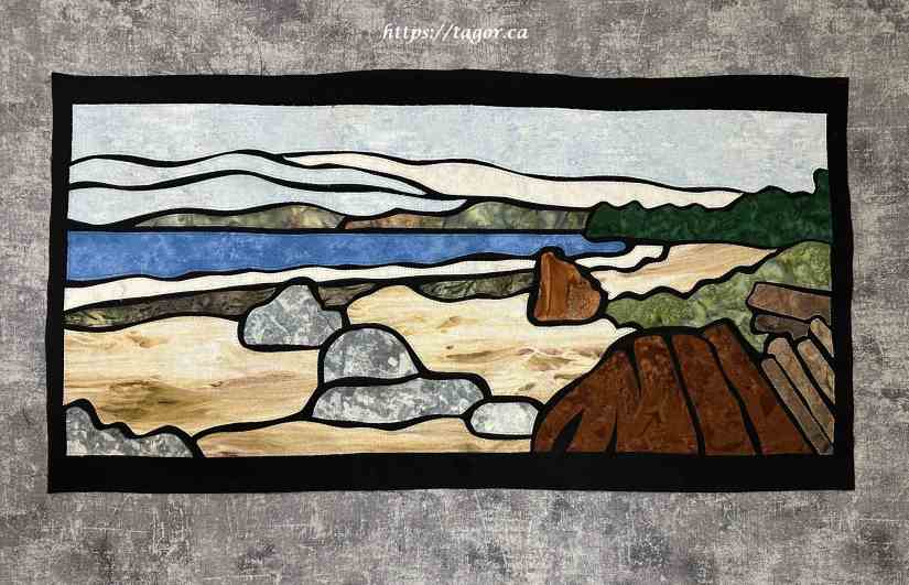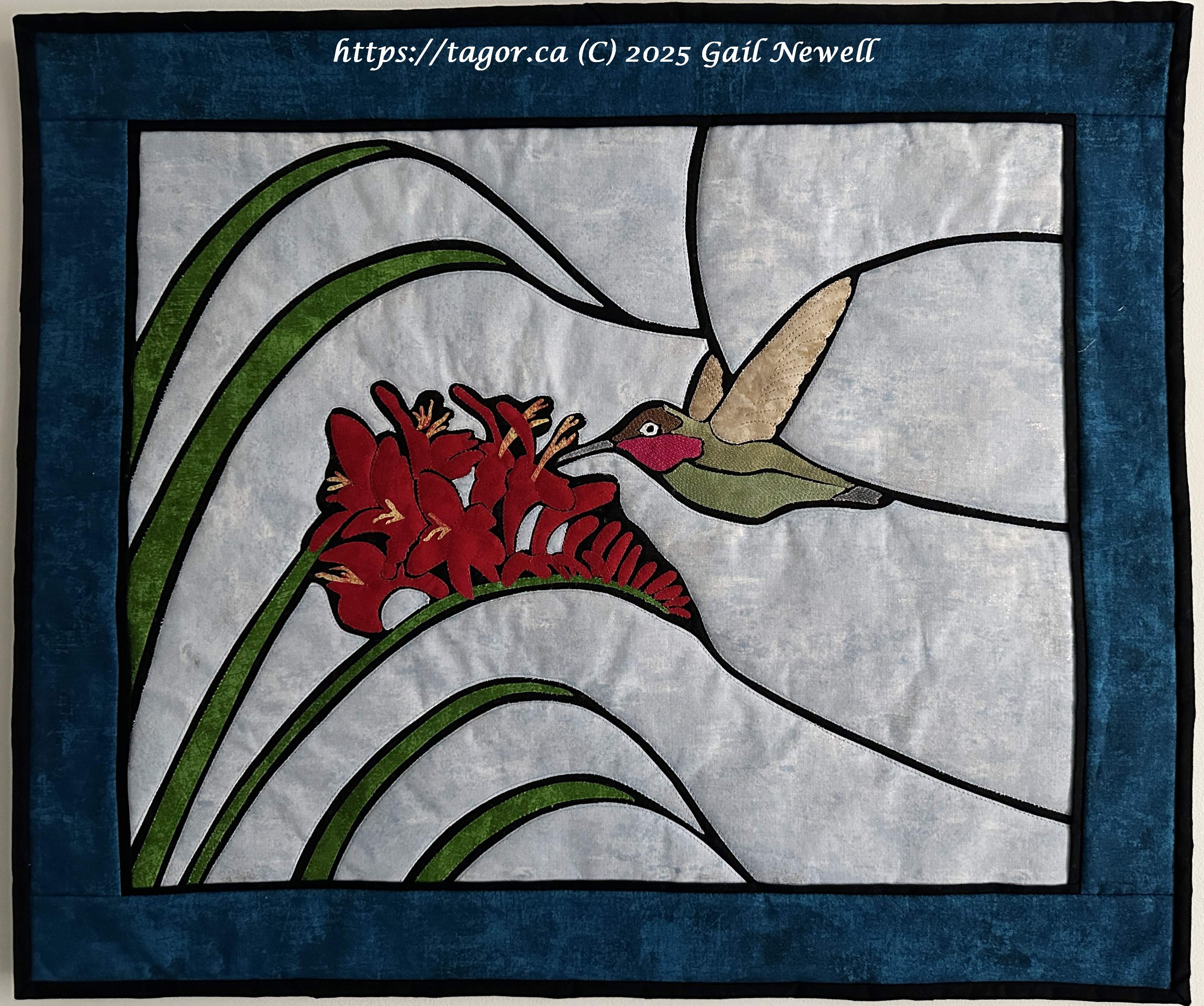 Joni walked us through a very interesting technique that allows one to create much more detailed fabric images in ‘stained glass’ than the traditional method of using bias strips.