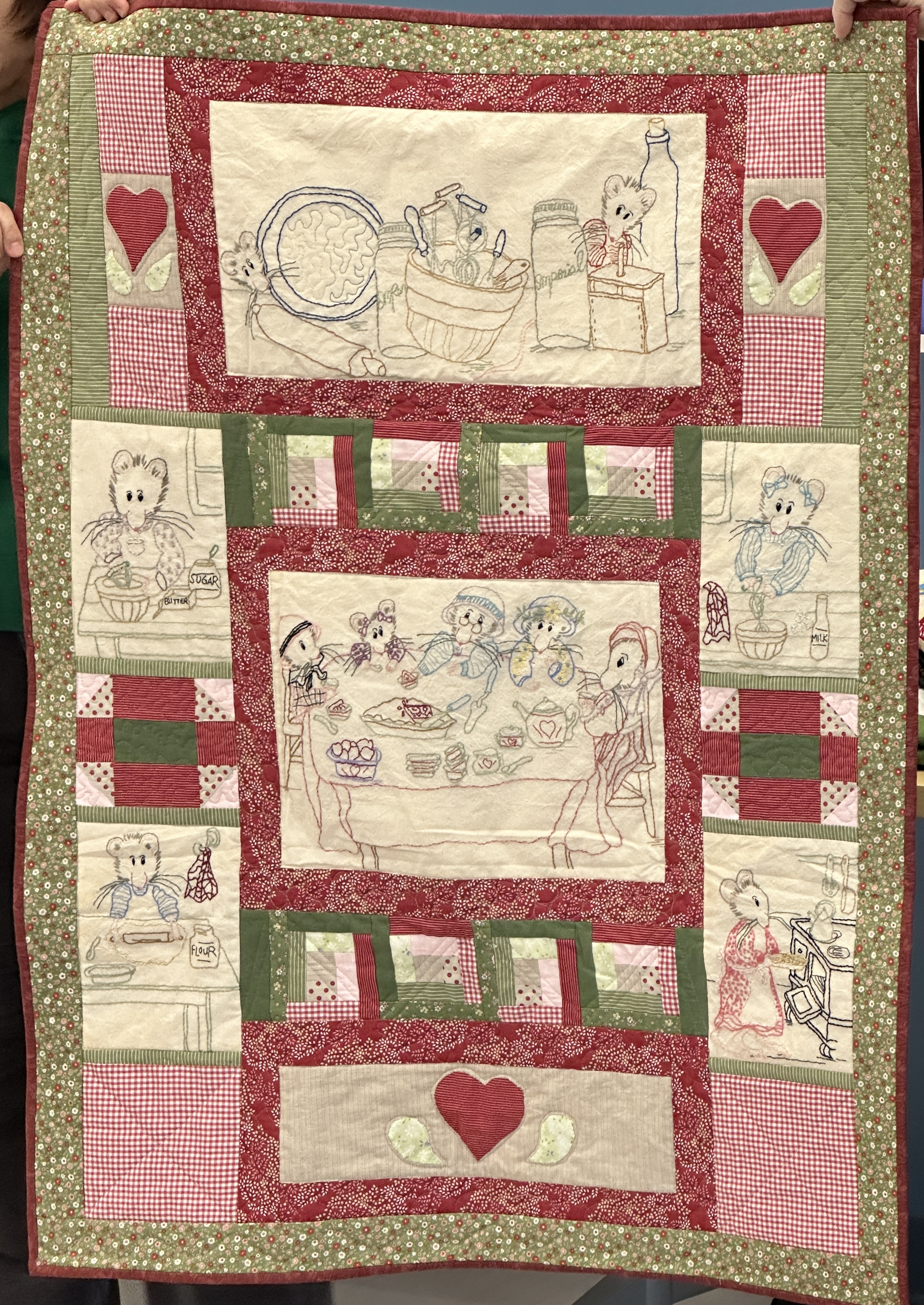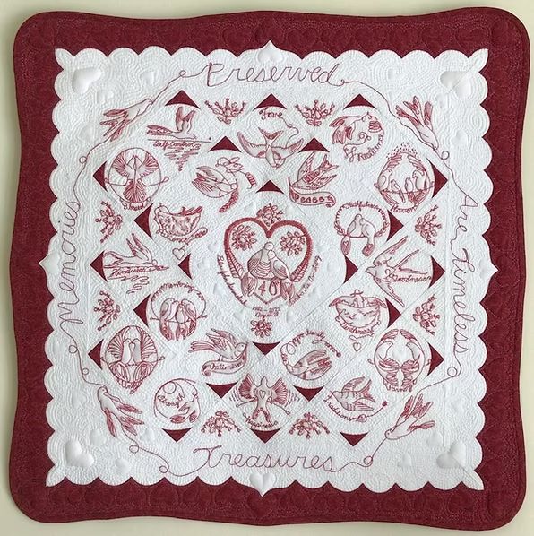Sandy Simmelink joined us on Zoom to give us great ideas about incorporating stories into our quilts for treasured family memories. She uses an amazing variety of techniques to add pictures and words to make her quilts truly memorable and memory inspiring.